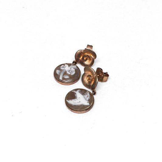 Italian Cameo Earrings Flower and Bird Cameo