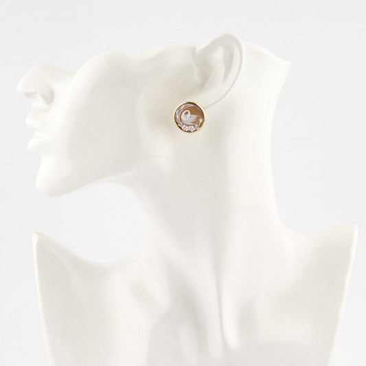 Madame Deco Italian Cameo Earrings Swan Cameo