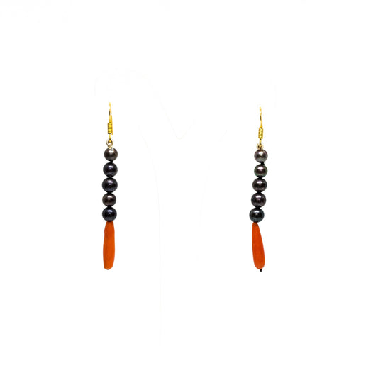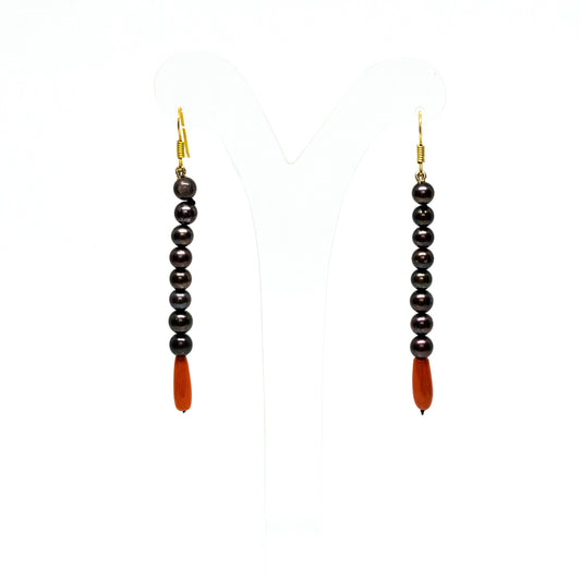 Black Pearl and Red Coral Earrings