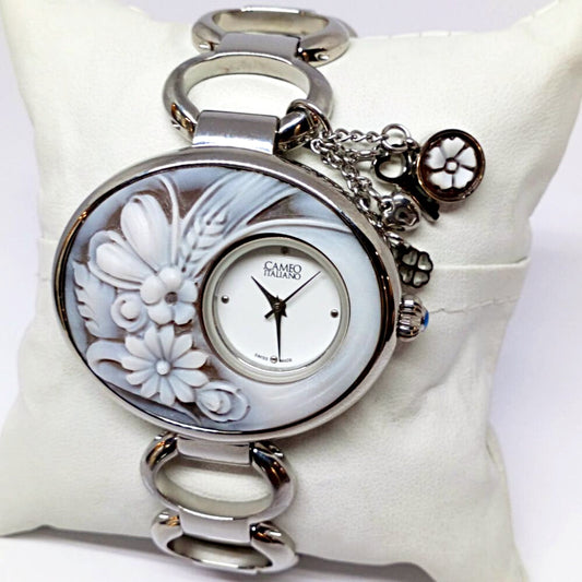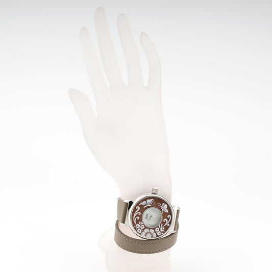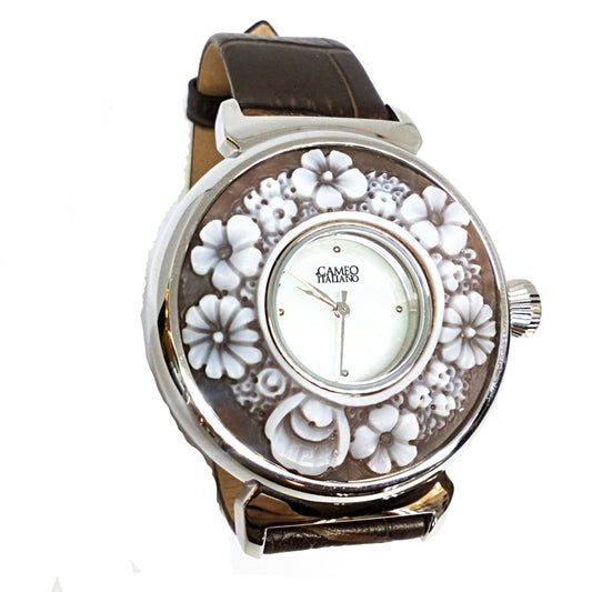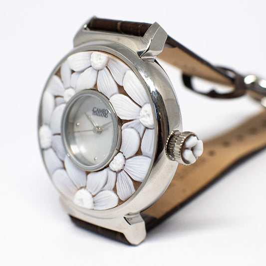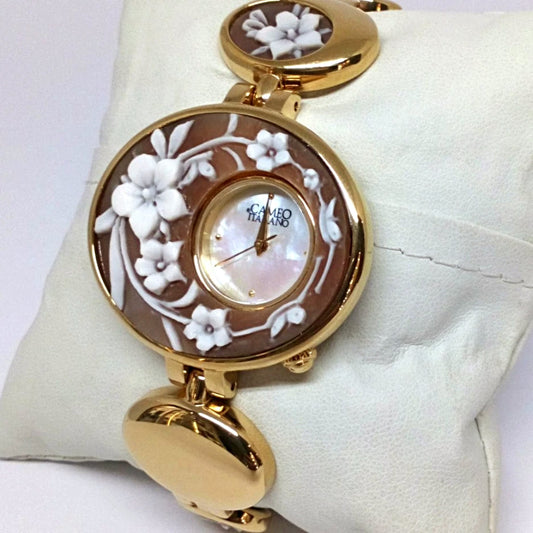 Italian Cameo Watch Partenope Cameo Flowers and Butterflies
