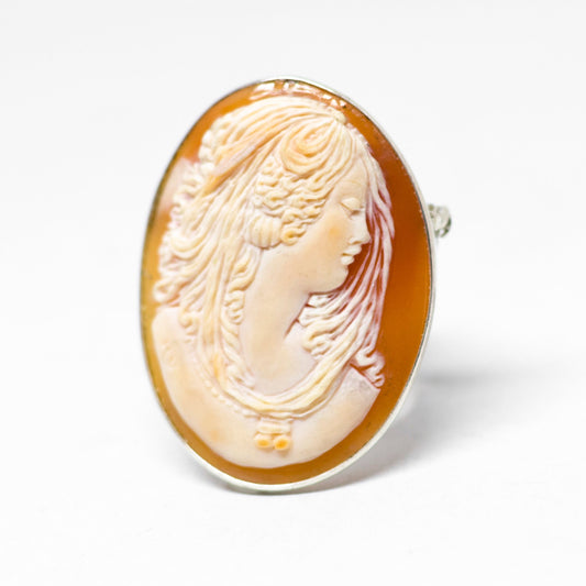 Artistic Cameo Brooch Pendant Profile Woman with Hand