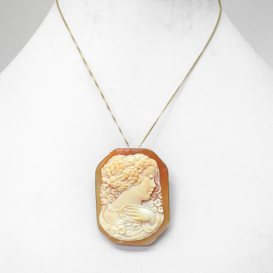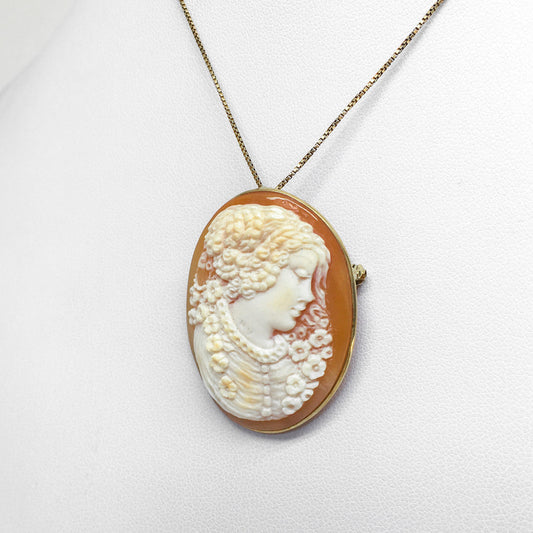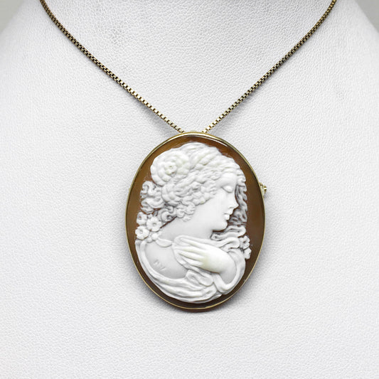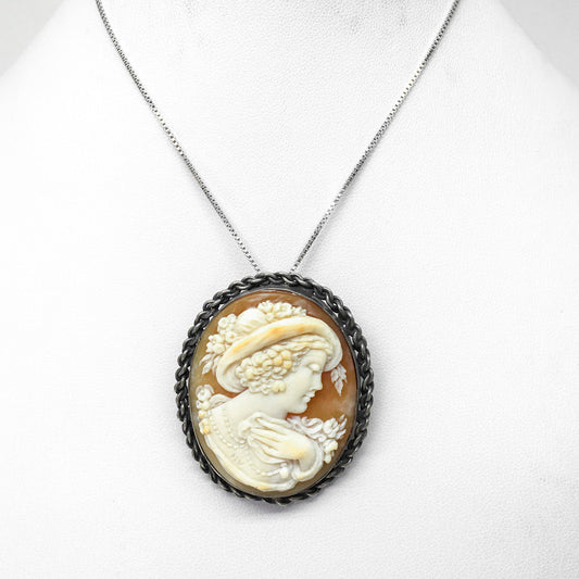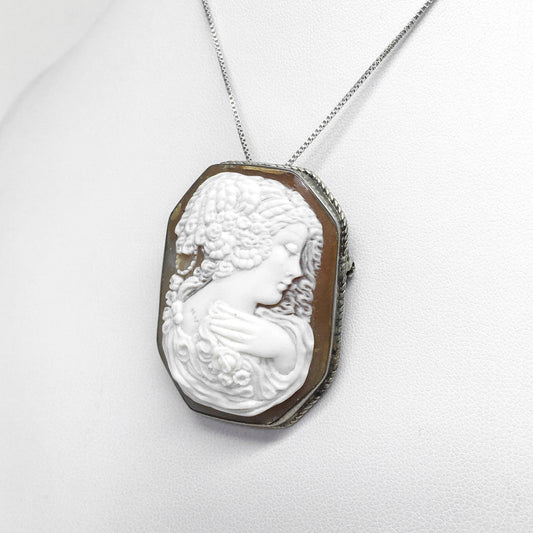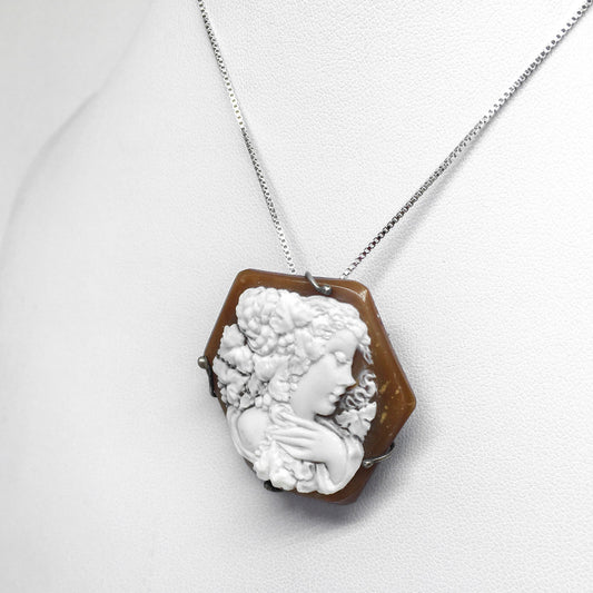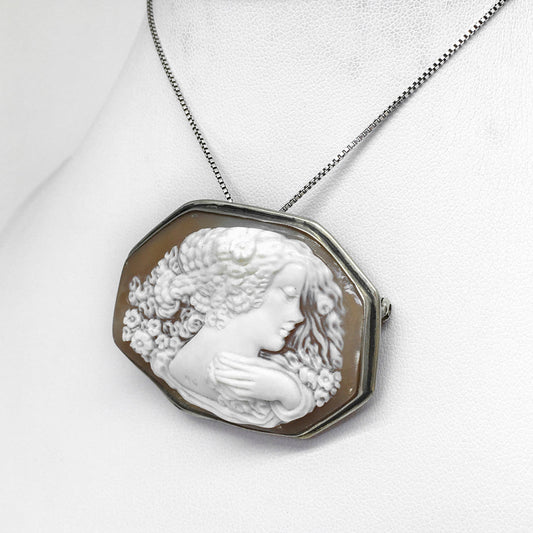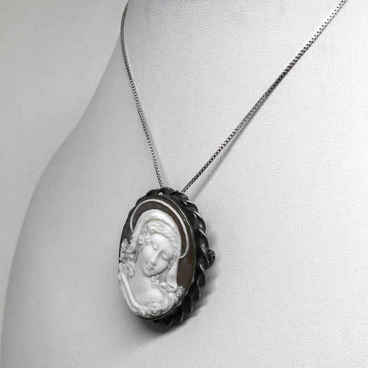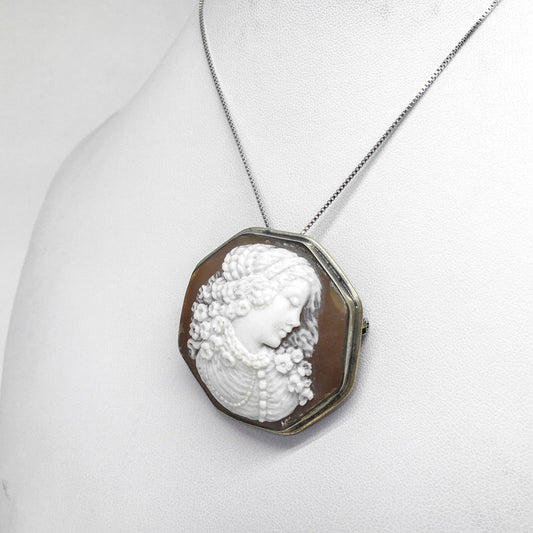 Artistic Cameo Pendant Brooch Profile Woman with Hand