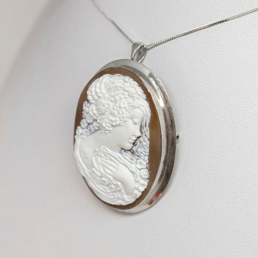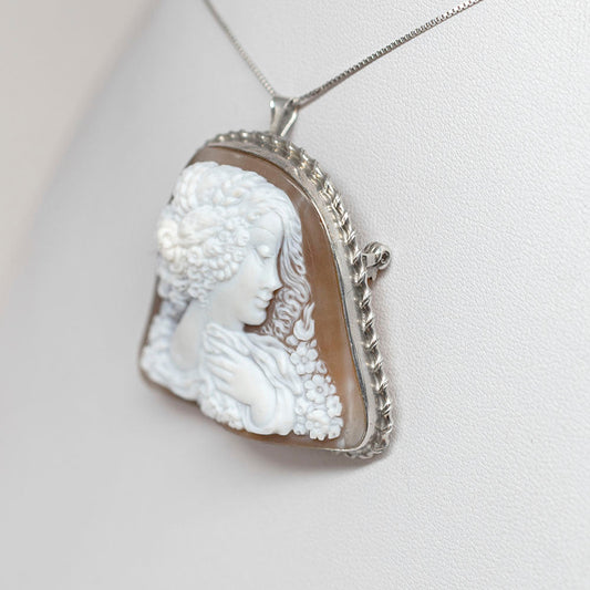 Antique Artistic Cameo Brooch Pendant Woman Face with Hand