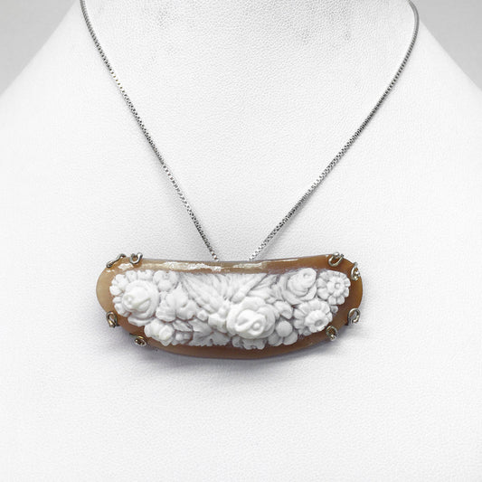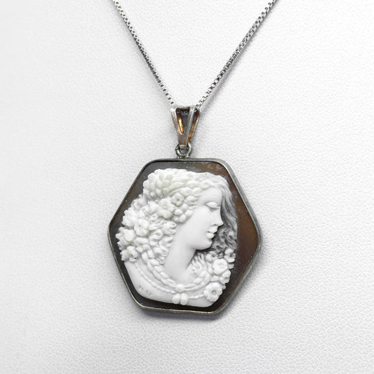 Artistic Cameo Pendant Brooch Profile Woman with Hand