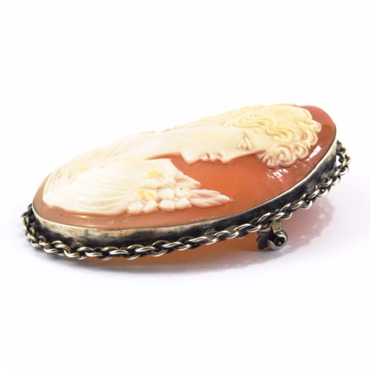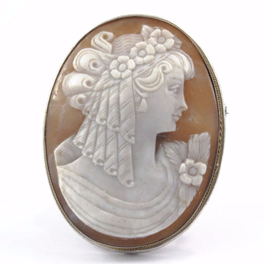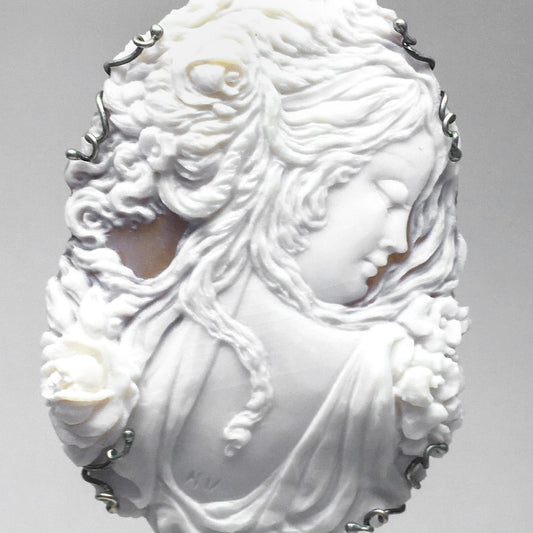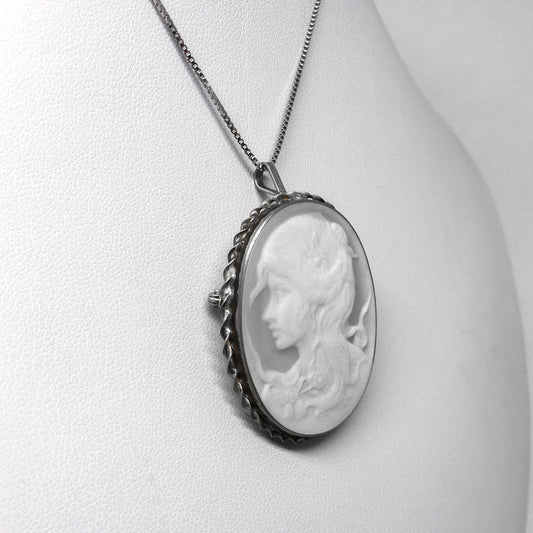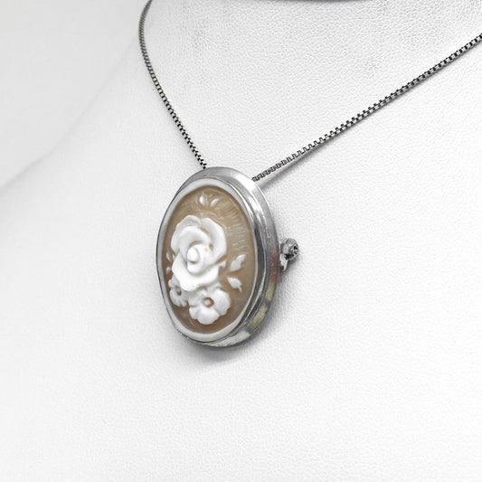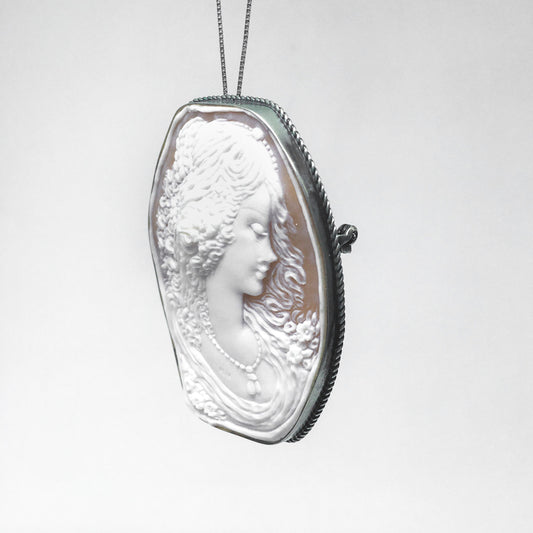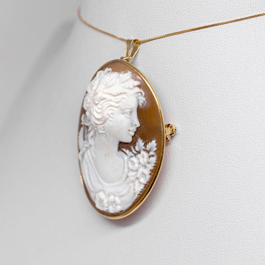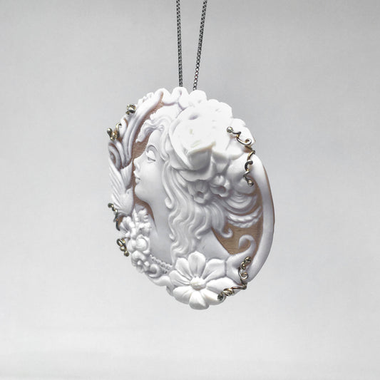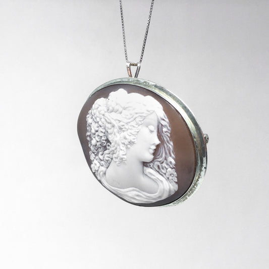 Italian Cameo Pendant Brooch Victoria Putto Cameo with Bow