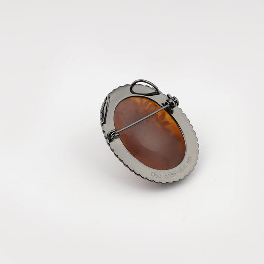 Italian Cameo Pendant Brooch Raffaello Cameo Flowers