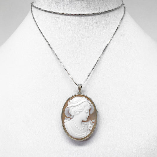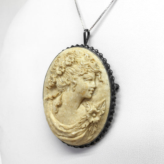Artistic Cameo Pendant Brooch Profile Woman with Hand