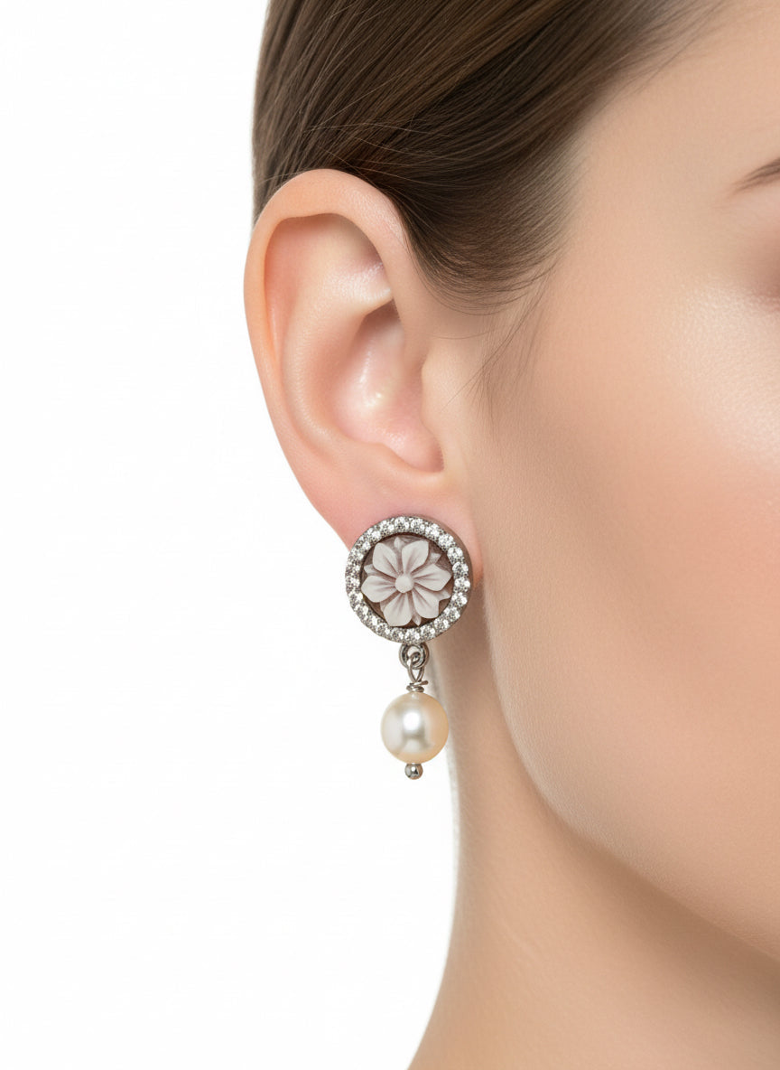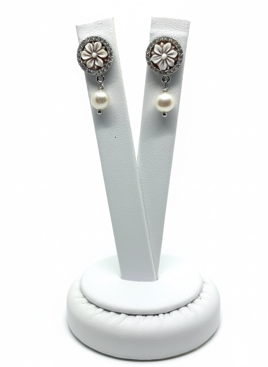 Orecchini in Cammeo incisione "Fiore"