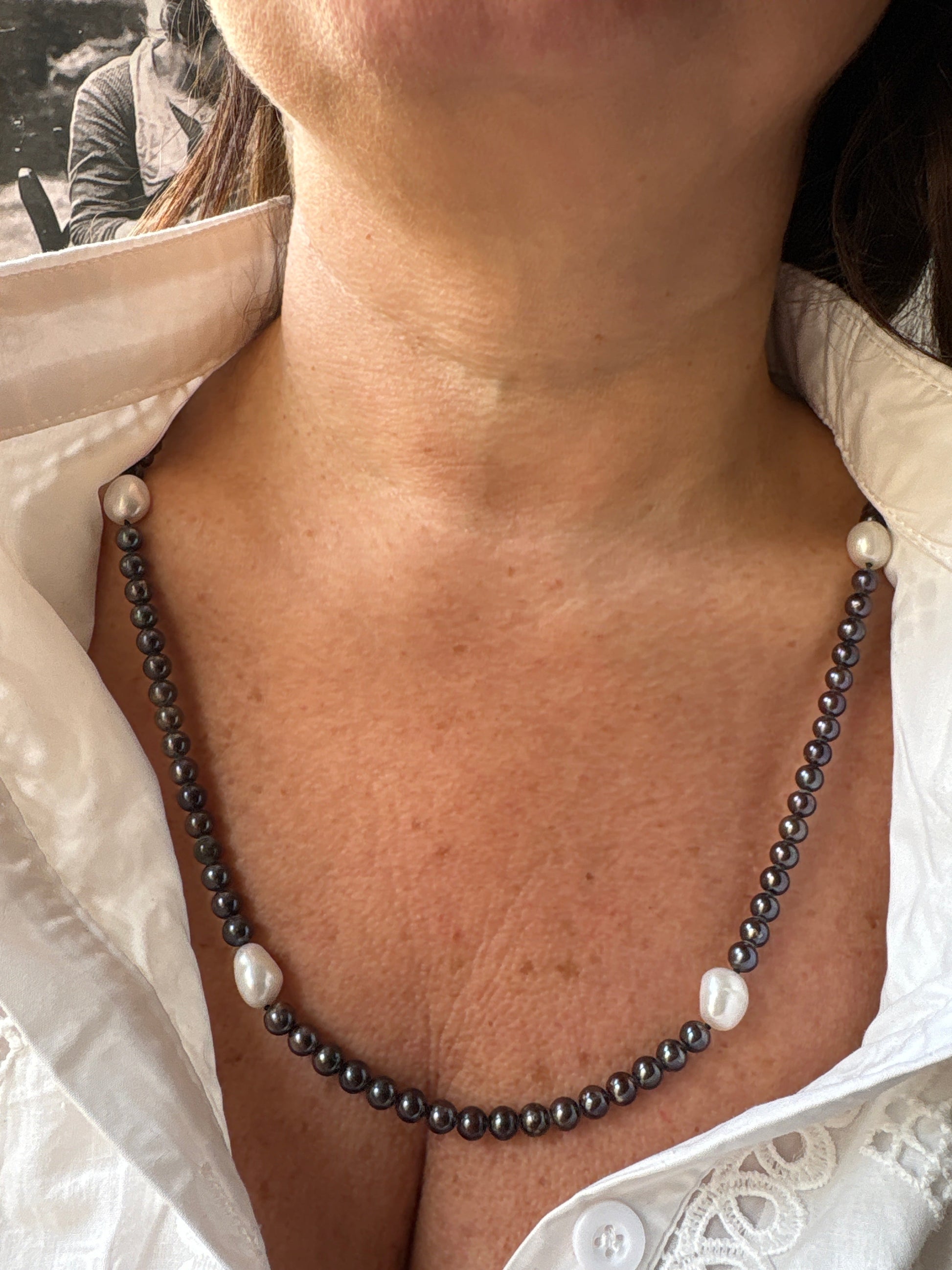 Collana di Perle Bianche e Nere