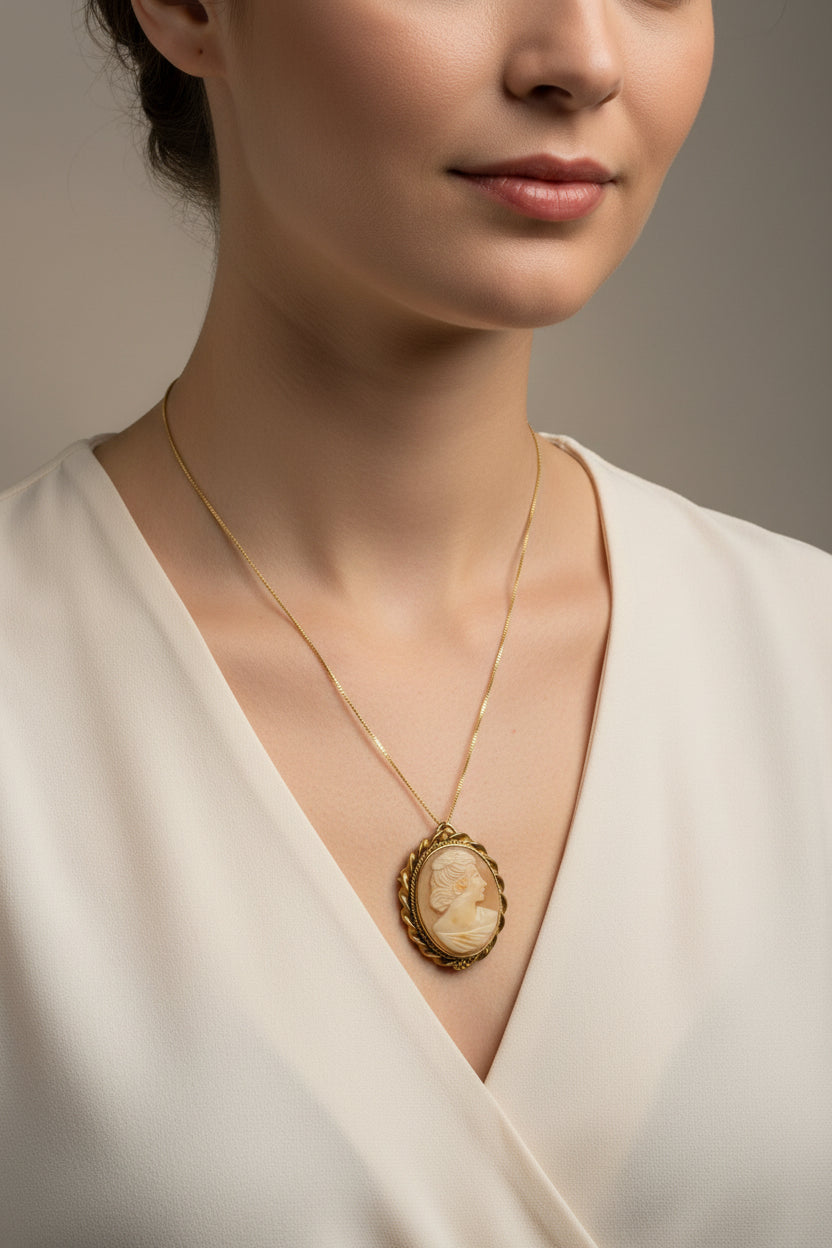 Spilla Pendente in Cammeo incisione "Profilo di Donna"