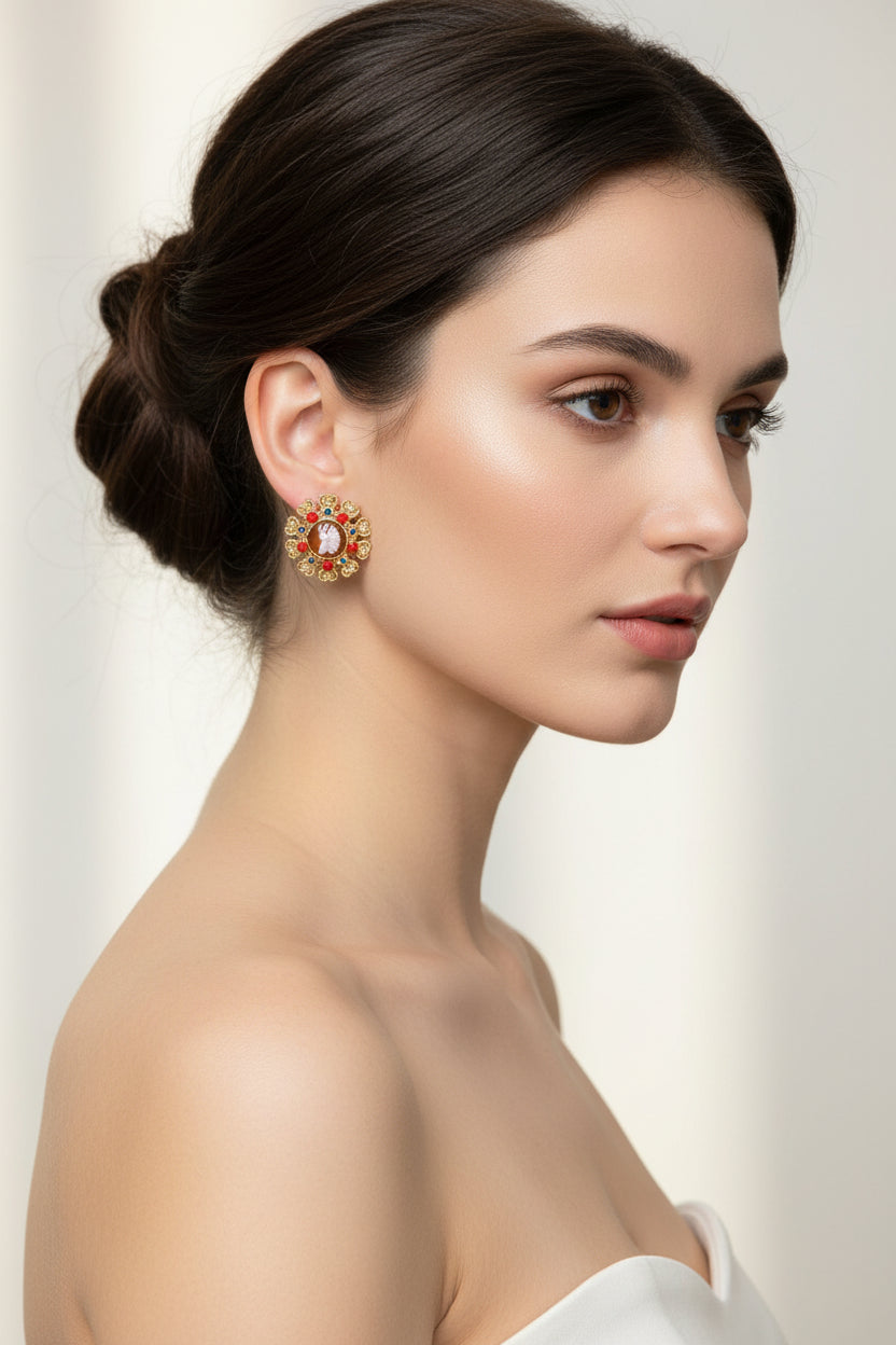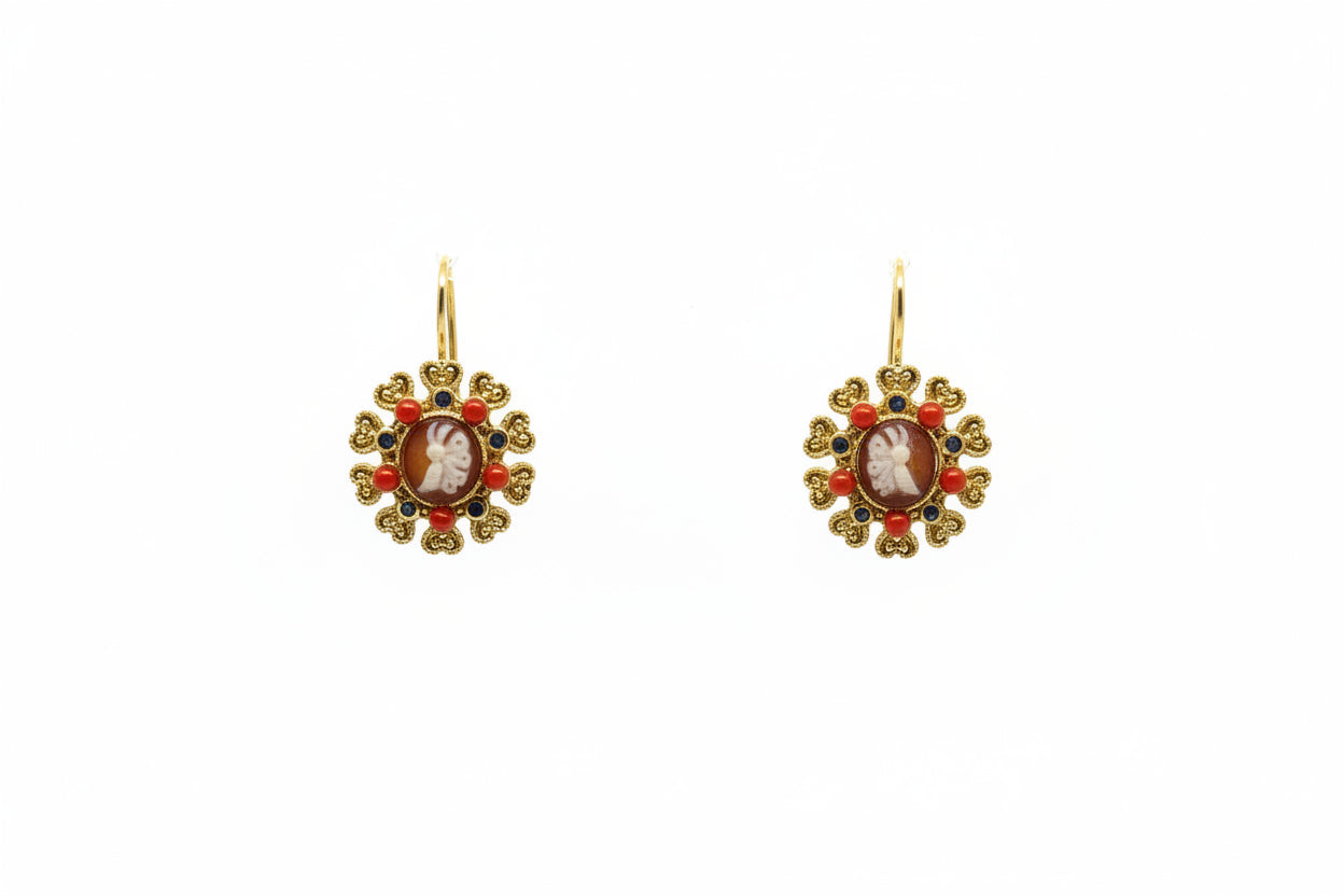 Orecchini in Cammeo e Corallo incisione "Farfalle"