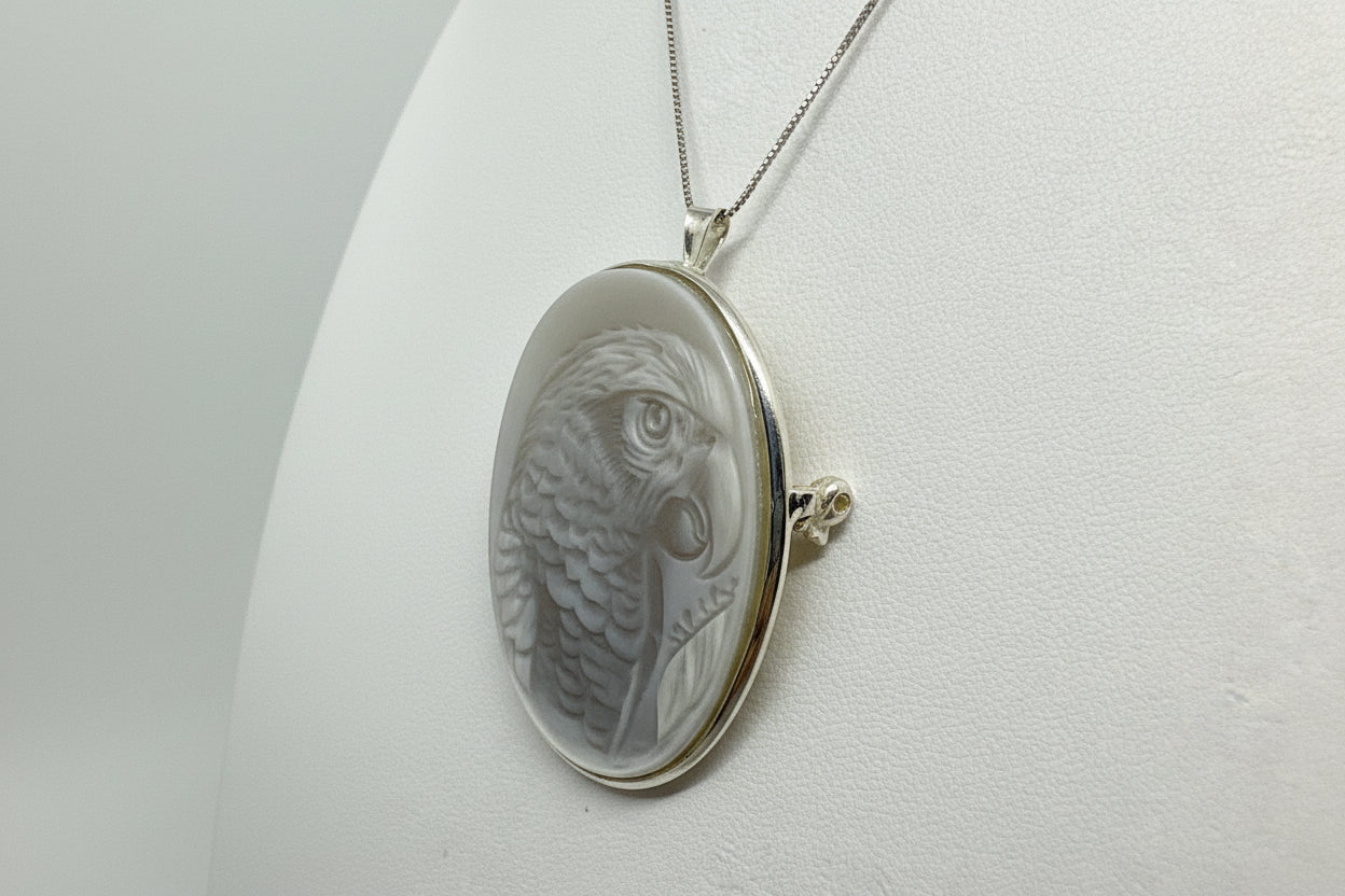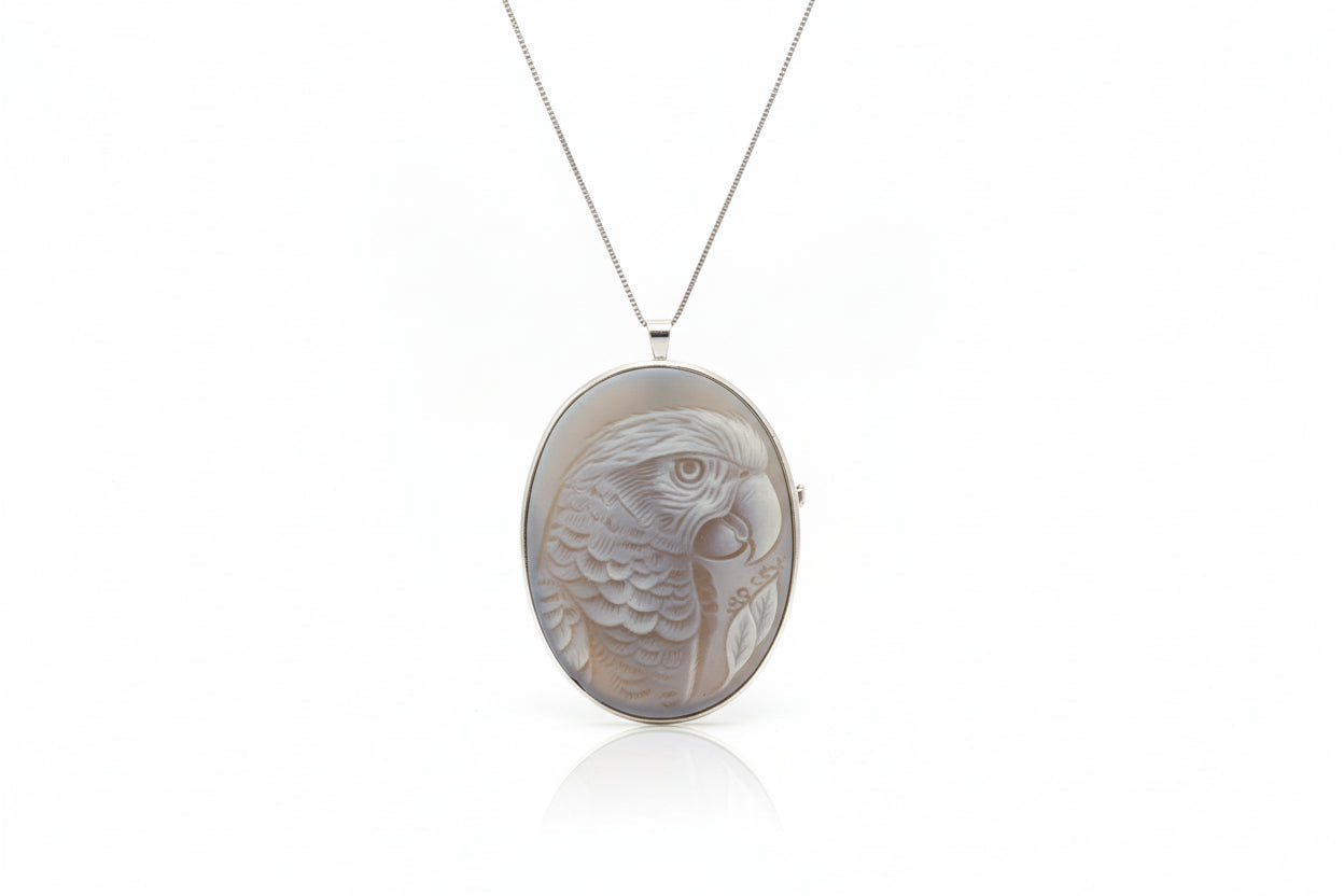 Pendente Spilla in Agata incisione "Pappagallo Portobello"