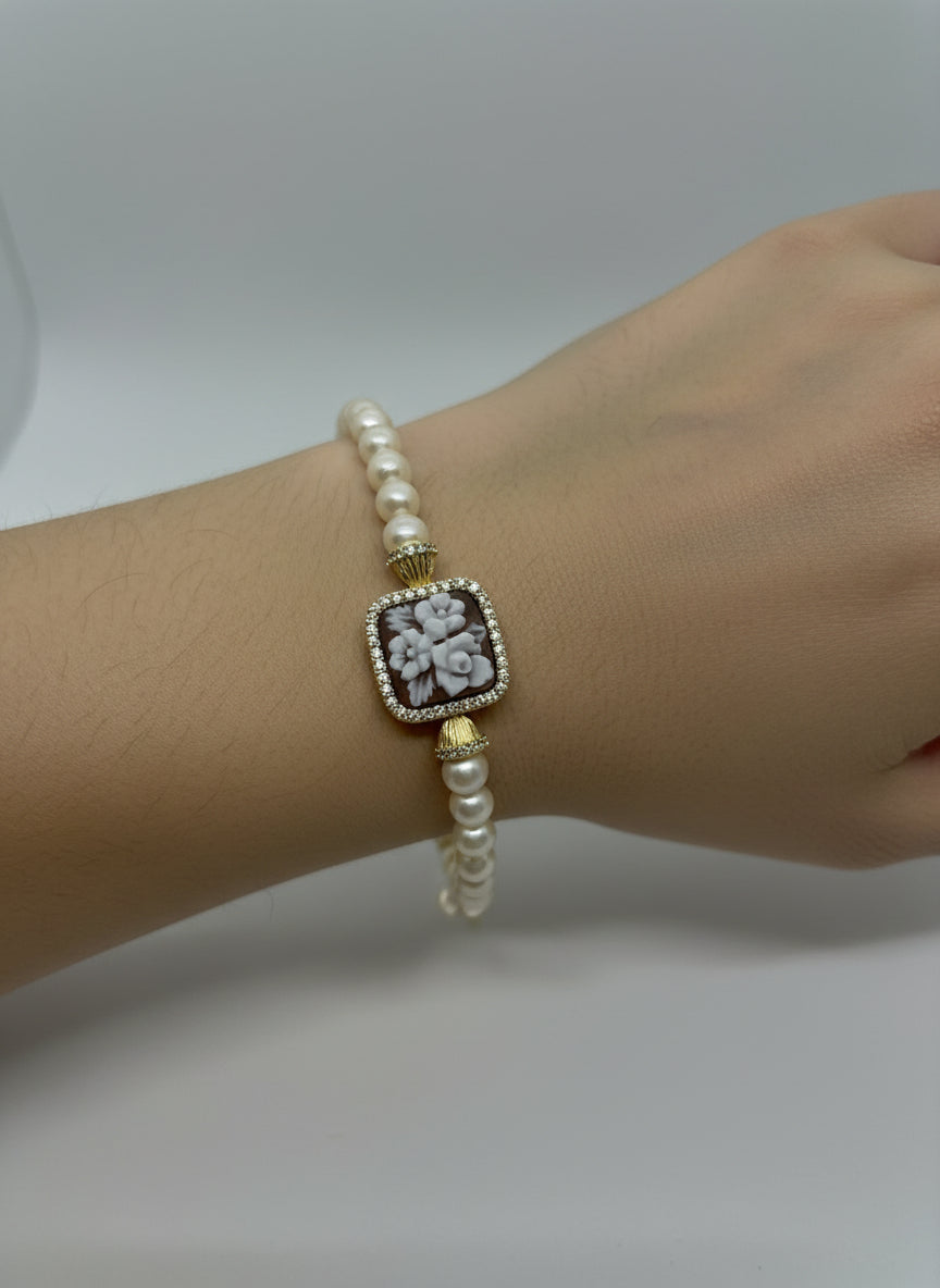 Bracciale in Perle e Cammeo incisione "Fiore"