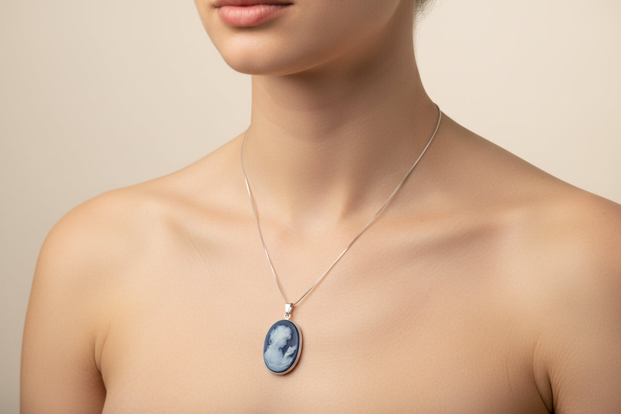 Pendente in Agata raffigurante Profilo di Donna con Uccellino