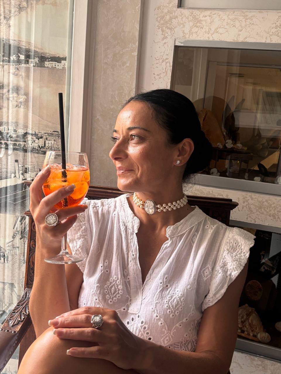 Collana in Cammeo Artistico Profilo di Donna con Dettaglio della Mano