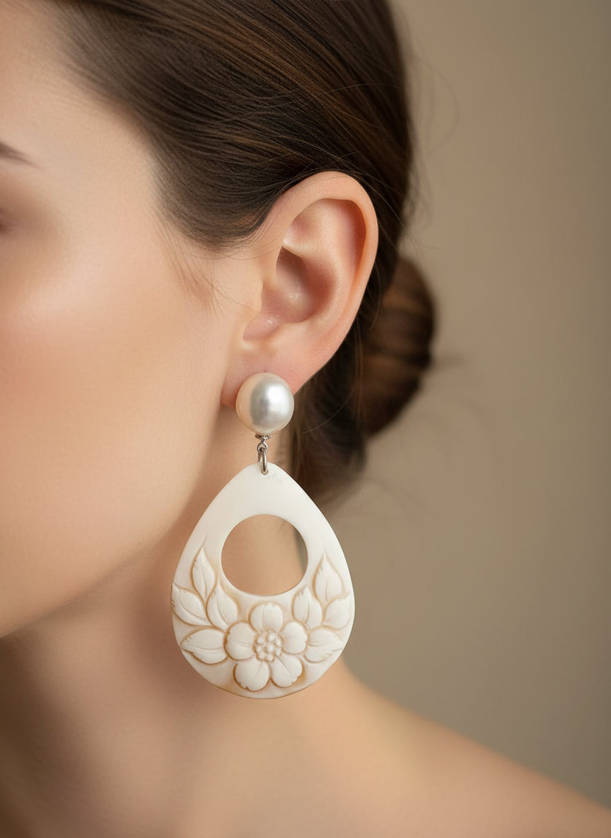 Orecchini in Cammeo incisione "Fiore"