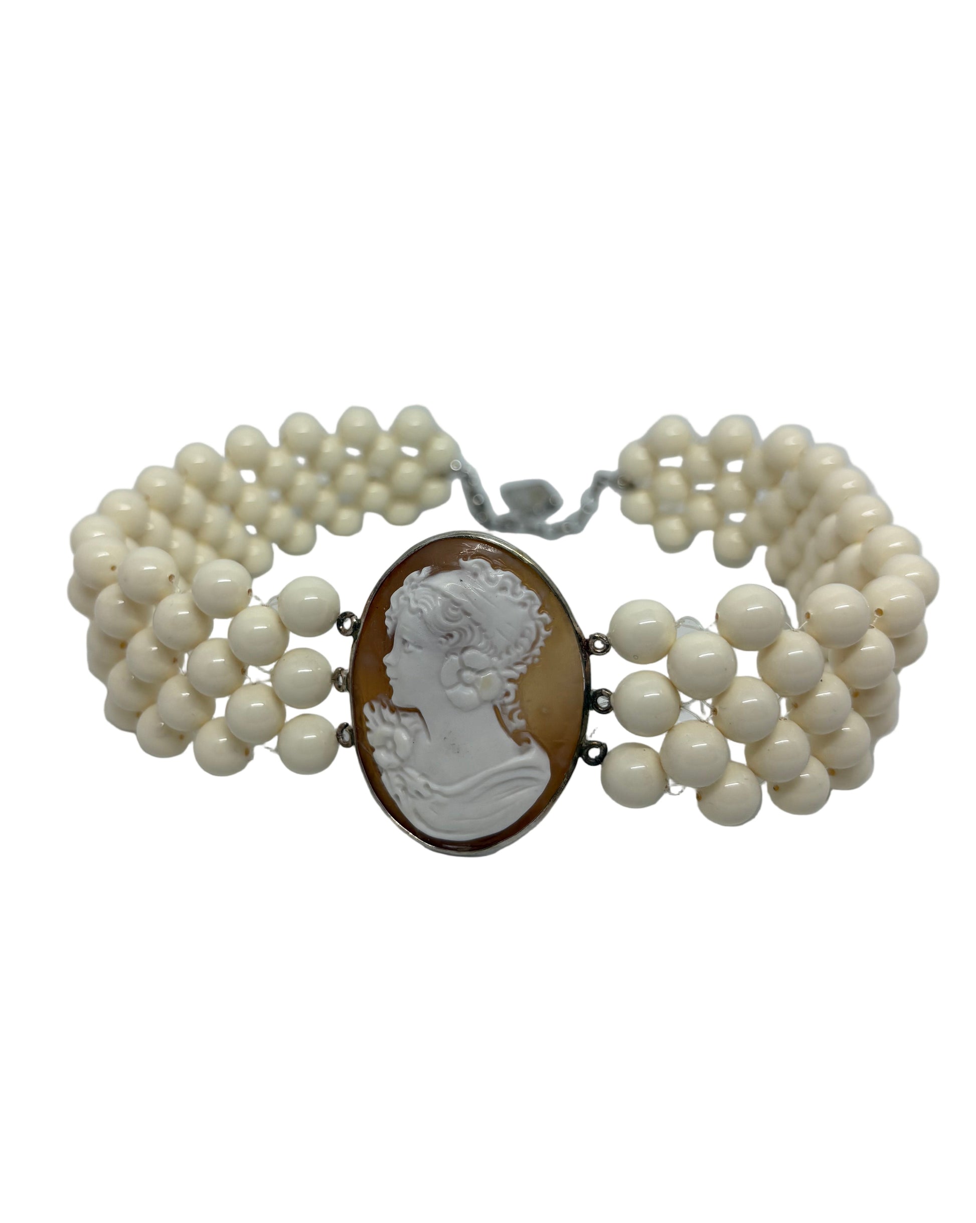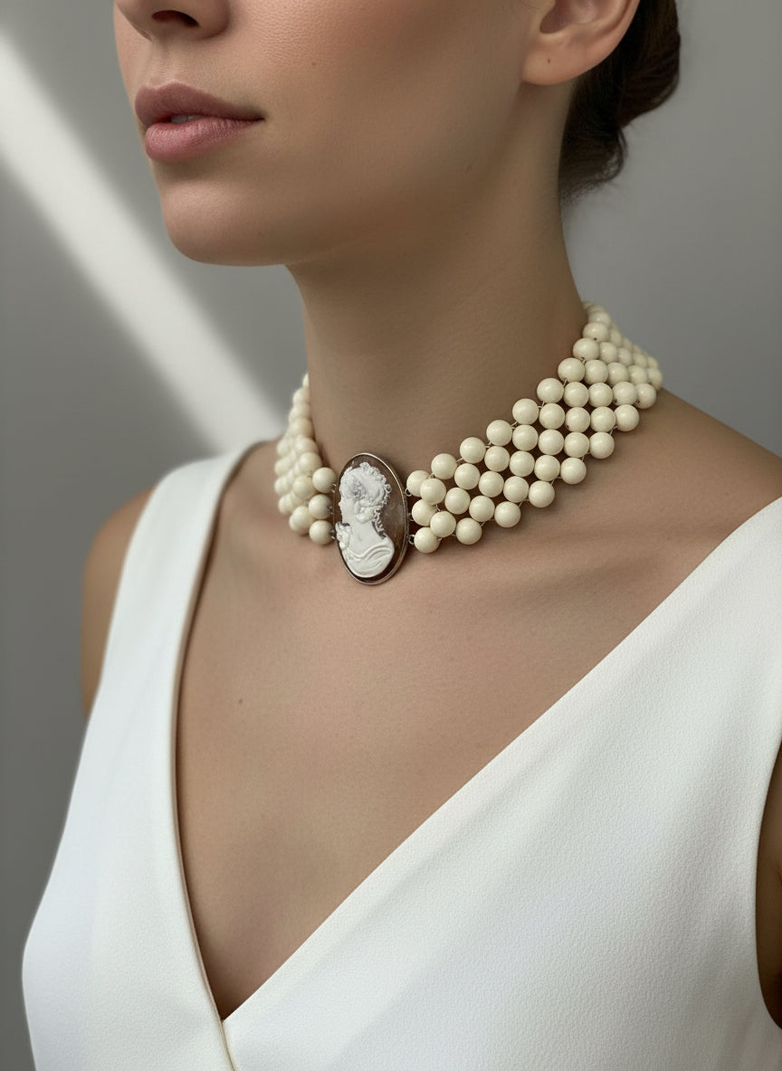 Girocollo in Perle e Cammeo incisone “Profilo di Donna”