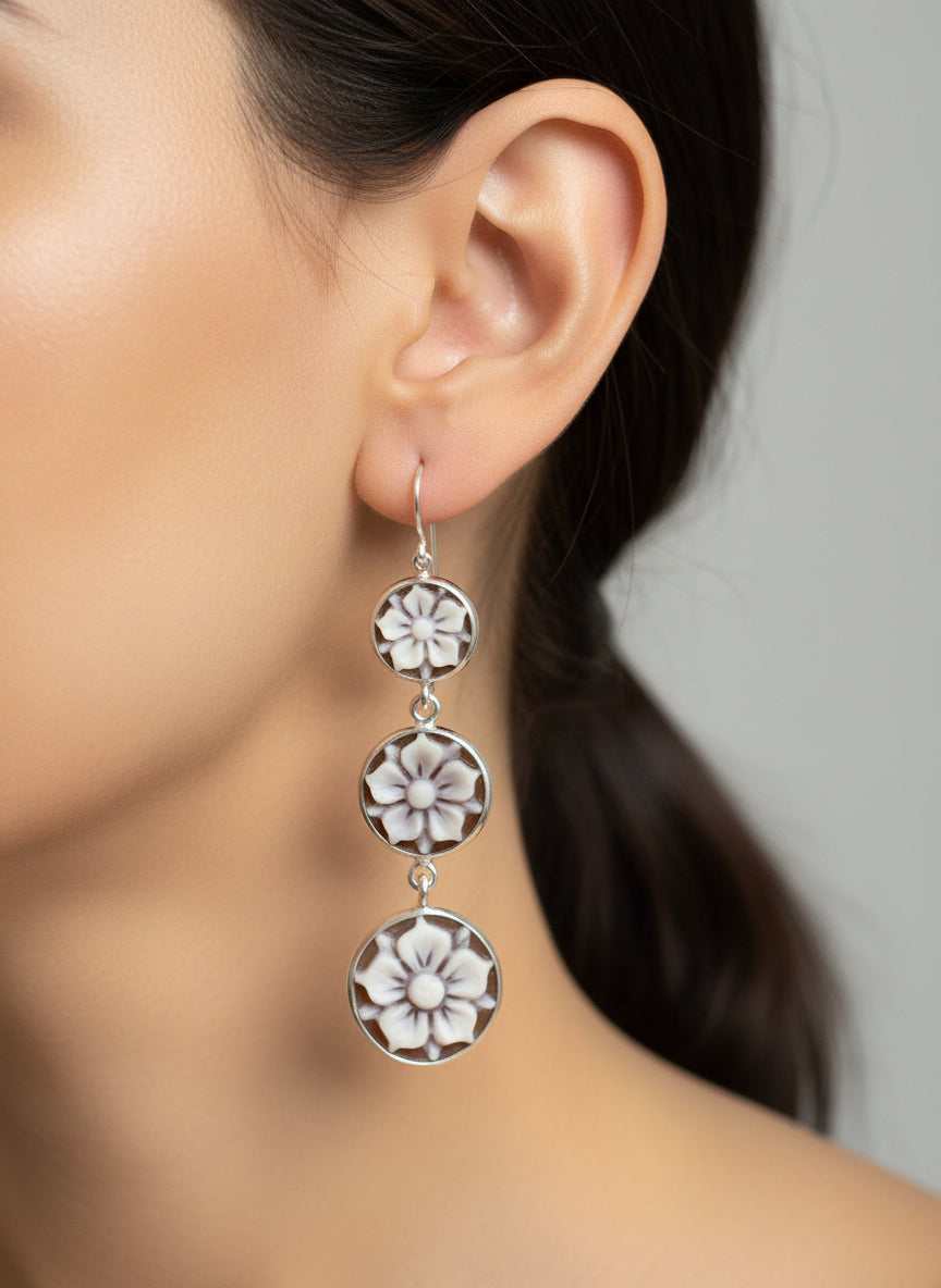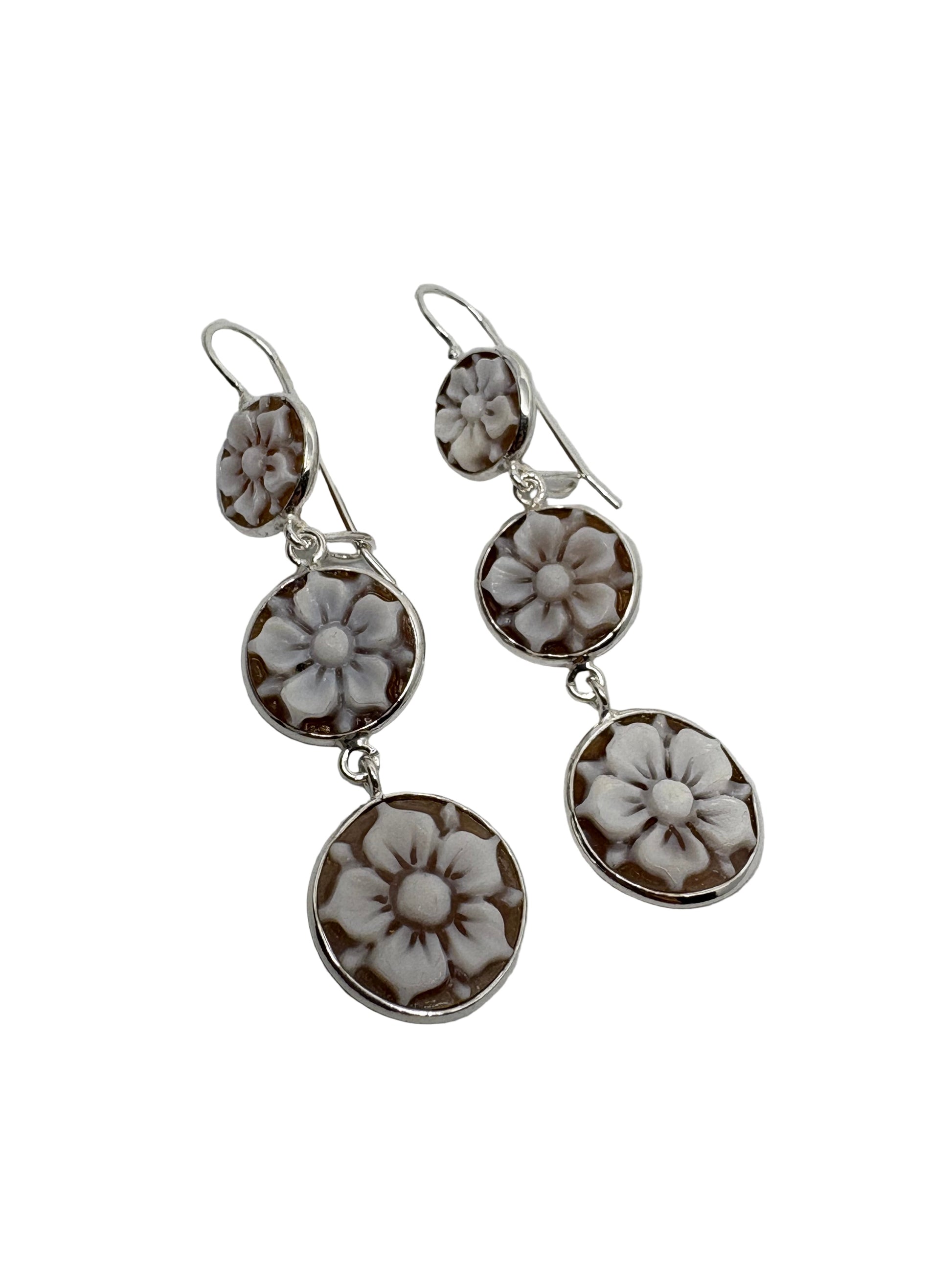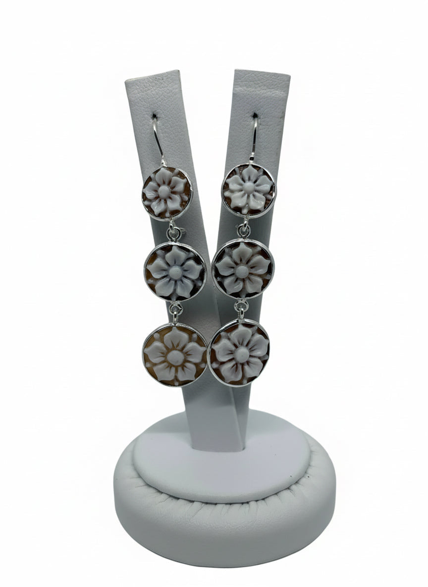 Orecchini in Cammeo incisione " Tris di Fiori"