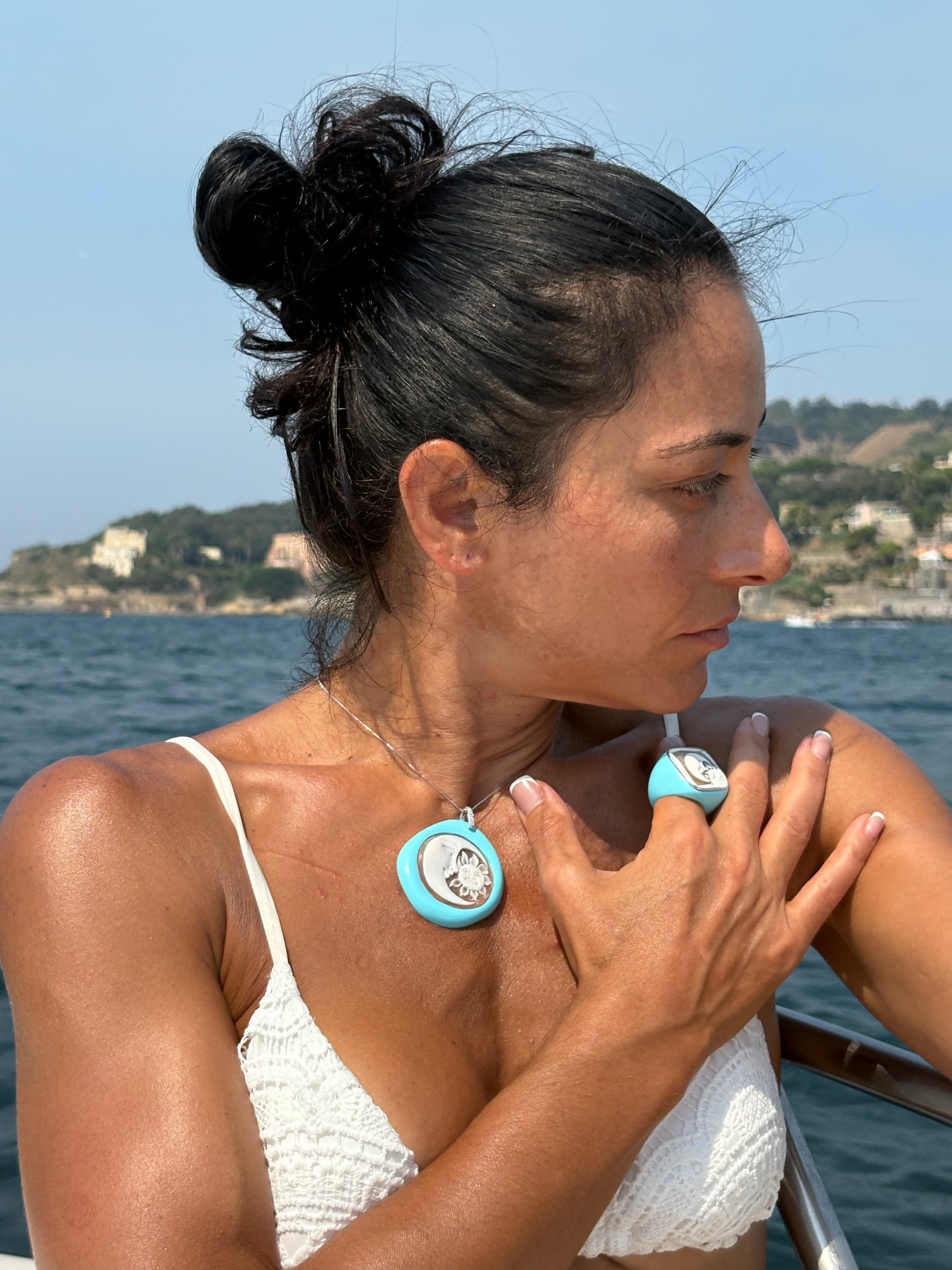 Pendente in Cammeo e Pasta di Turchese 'Sole e Luna'