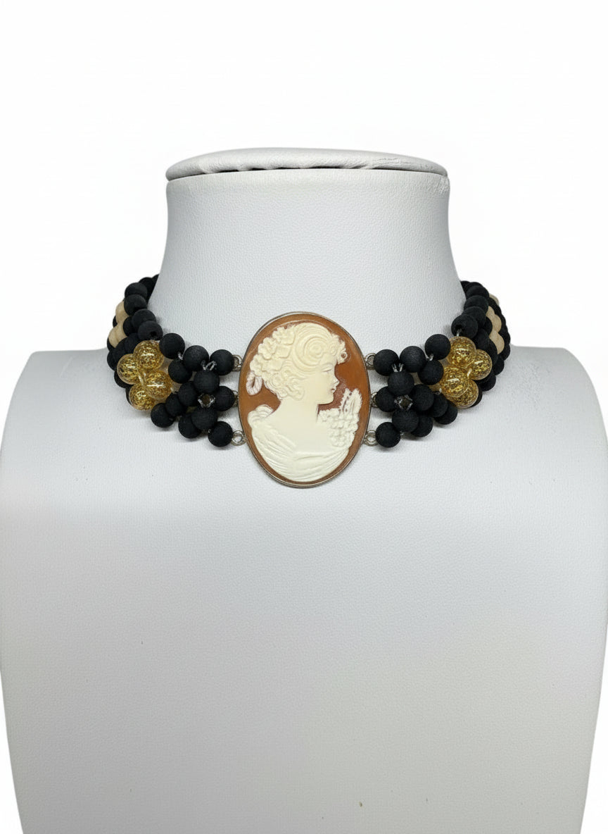 Girocollo In Pietra Lavica e Cammeo