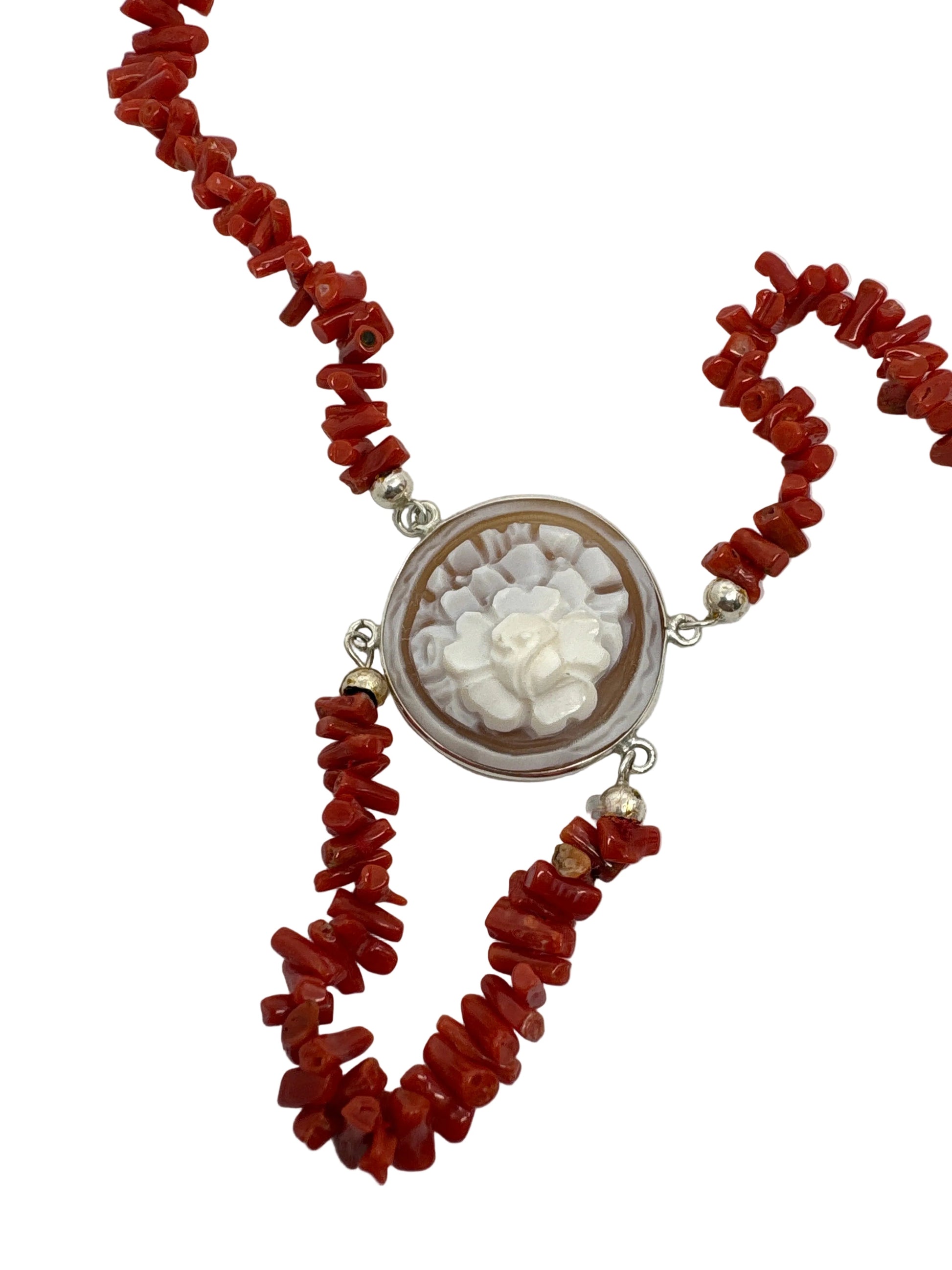 Collana Corallo e Cammeo incisione "Fiore"