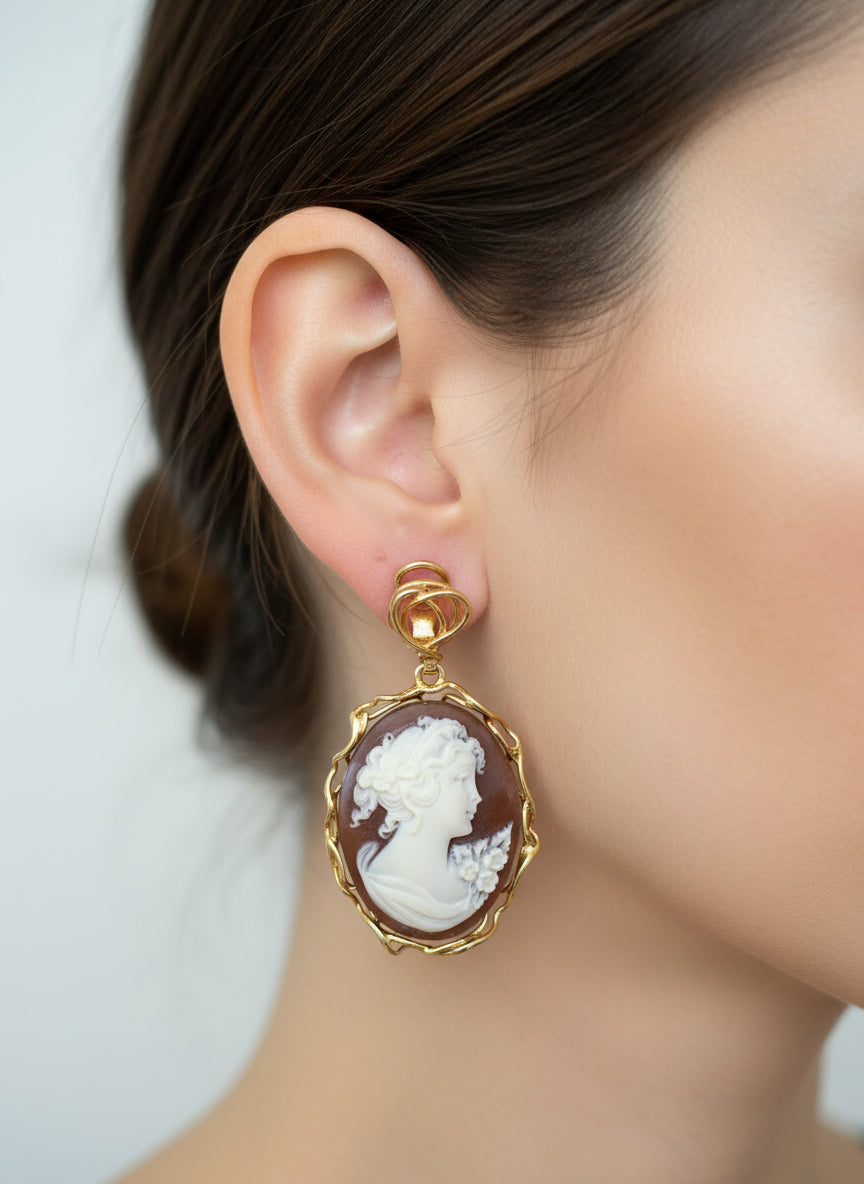 Orecchini in Cammeo incisione "Profilo di Donna"